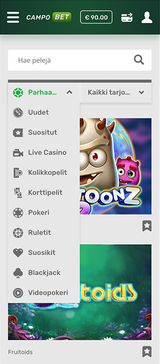 Jos olet kiinnostunut tietyistä peleistä tai tietyn tuottajan sovelluksista, voit käyttää suodattimia tai hakutoimintoa sivun ylälaidassa. Näin löydät vaikkapa rakastamasi korttipelit tai kolikkopelit. Valikoima on laaja, joten ota aikasi ja valitse tarpeesi mukaan!