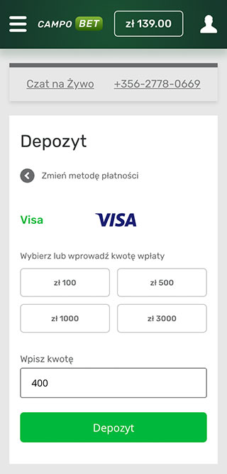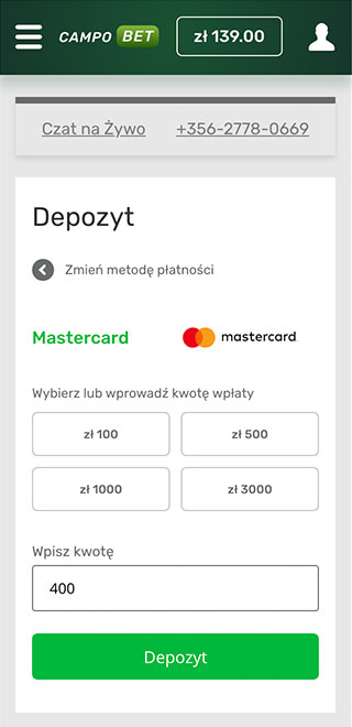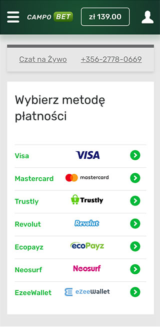 Bez względu na to, na której stronie kasyna CampoBet jesteś teraz, zawsze możesz uzyskać dostęp do swojego salda, klikając odpowiedni symbol w prawym górnym rogu ekranu. Skończysz na stronie ze wszystkimi szczegółami na temat Twoich finansów. Tutaj możesz dokonywać wszelkiego rodzaju operacji pieniężnych, w tym wpłat i wypłat.